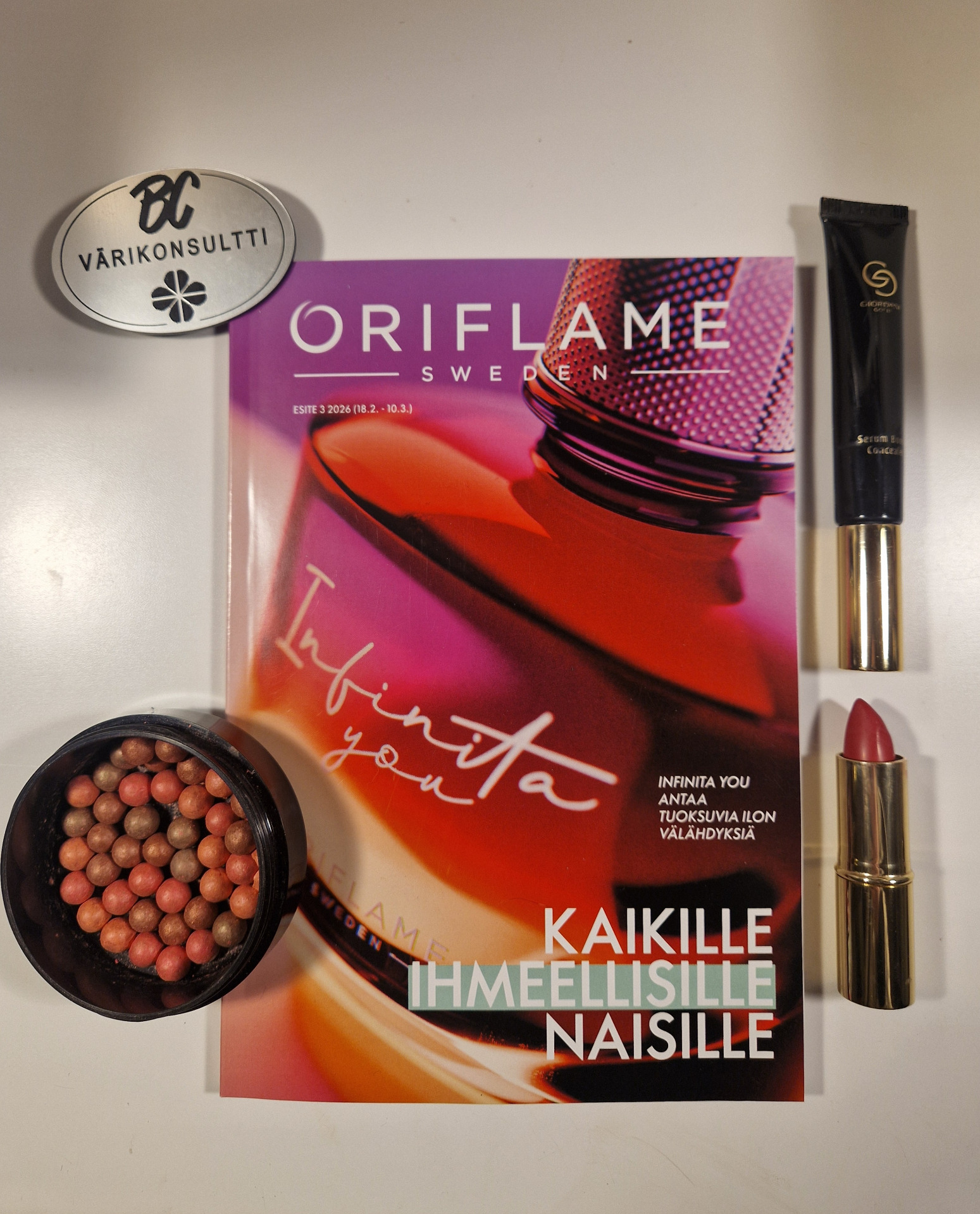 Kuvassa on uusin Oriflamen kuvasto. Kuvasto on aina voimassa kolme viikkoa. Kuvasto on voimassa 18.2. - 10.3.2026.